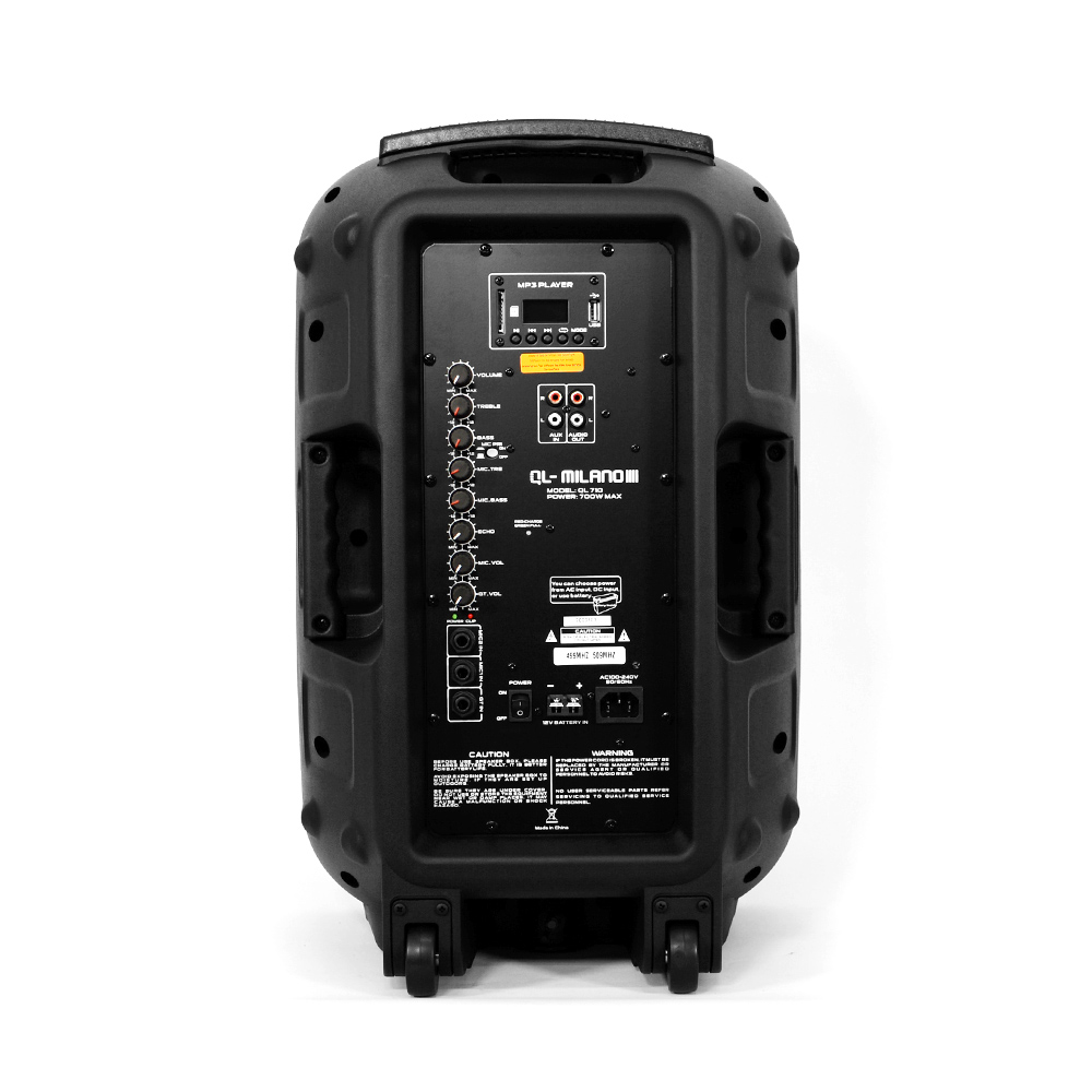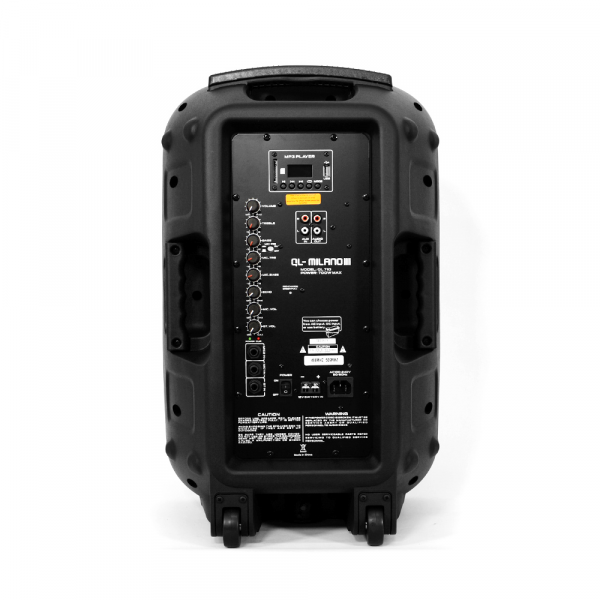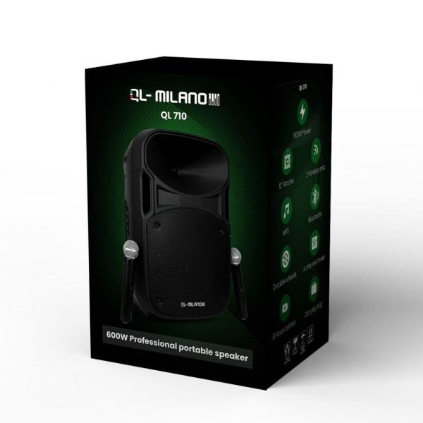 ב-QL Milano חשבו על כל הצרכים והפרטים הכי קטנים ויצרו בידורית ניידת 12 אינץ’ עם מיקסר מובנה וחיבור נוסף של שלושה מקורות סאונד נוספים בחיבור PL עם שליטה נפרדת לכל ערוץ. למעשה תוכלו לבצע הופעות קטנות בשטח או ברחוב עם חיבור נוסף של כלי נגינה שונים ומיקרופונים נוספים עם שליטה נפרדת על כל ערוץ לפי הצרכים שלכם מה שהופך את הQL710 למערכת הגברה ניידת נוחה במיוחד למוזיקאים.