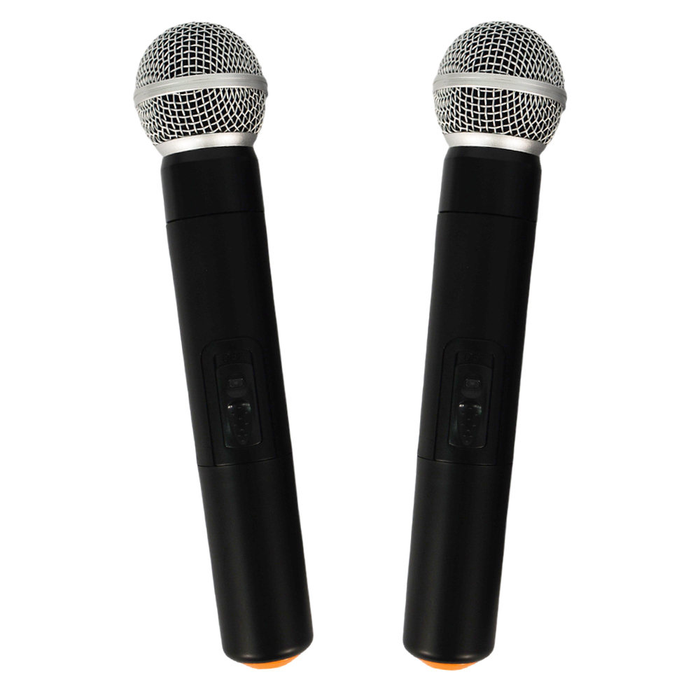 הבידורית מצוידת בזוג מיקרופונים אלחוטיים עם כפתור הדלקה וכיבוי מסיליקון על גבי המיקרופון ומשדרים רגישים שתמצאו במיקרופונים באלפי שקלים. מיקרופונים אלחוטיים מסיבים העשויים מראש גריל מתכת ומספקים אמינות גבוהה מפני נפילות ושברים. איכות הקפסולה הפנימית שבתוך המיקרופון אלחוטי מספקת צליל עשיר בתדרים ופרטים ואיכות המשתווה למיקרופונים של זמרים מקצועיים. תוכלו ליהנות מאירוע קריוקי מושלם עם מיקרופון אלחוטי איכותי ואפקט אקו לזמרים הנמצאים בגב הבידורית.